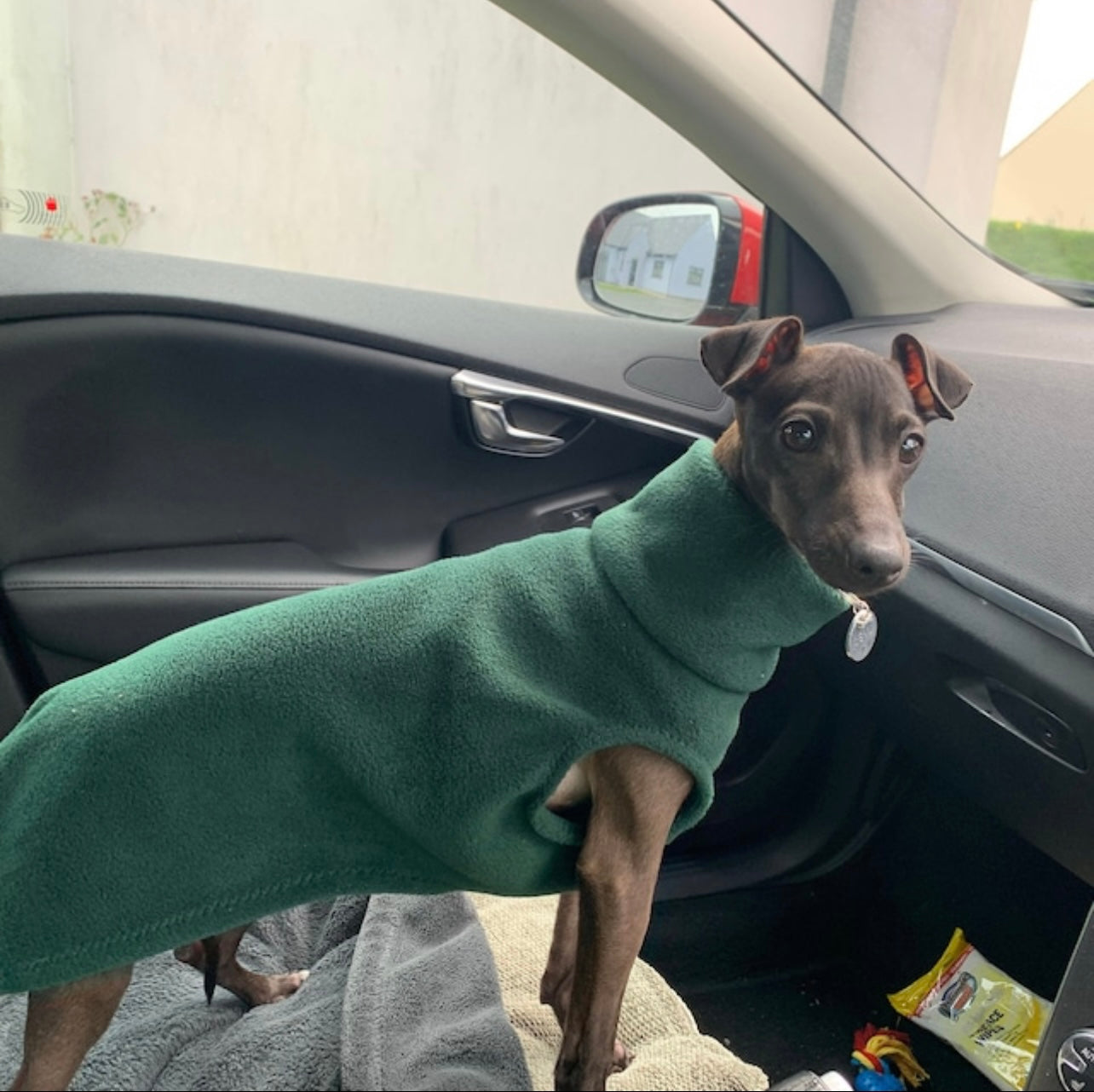 Handmade Italian greyhound fleece vests. Perfect for those pooches who feel the cold on their walkies but still like to have their legs free. Made using soft anti-pill polar fleece. Lovingly made in the UK. Please allow 3 weeks before I can dispatch these made to order items.