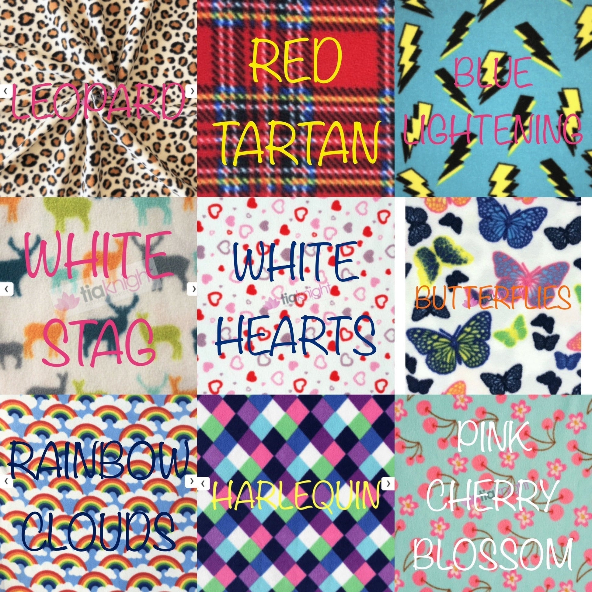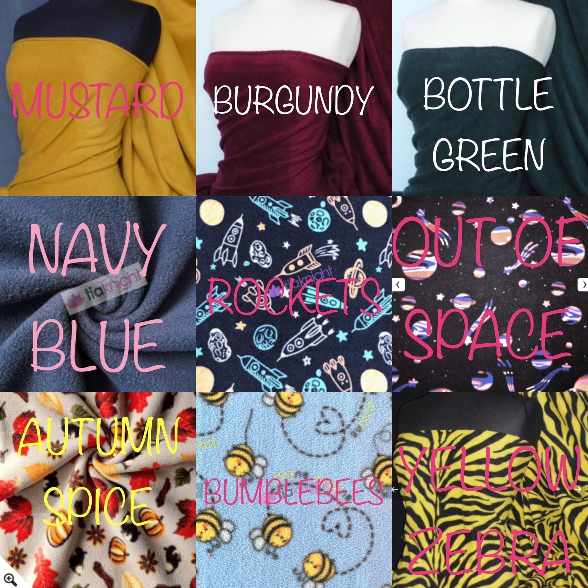 Note- I try to keep fleece in stock at all times but occasionally I will need to order the fleece in before I can make your order. I will let you know if there will be a delay to your order because of this.