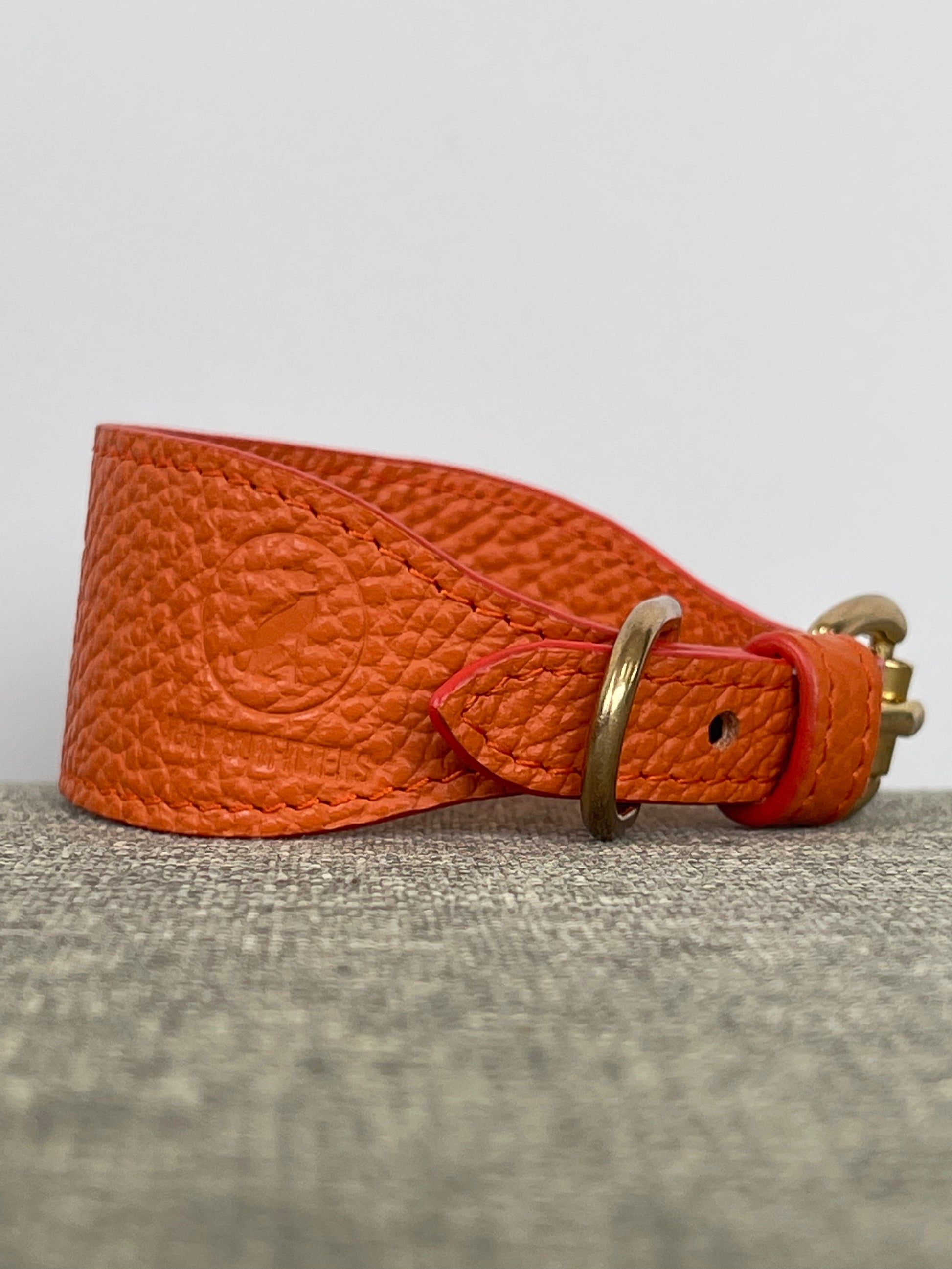Super soft leather Italian Greyhound collar - Burnt Orange
