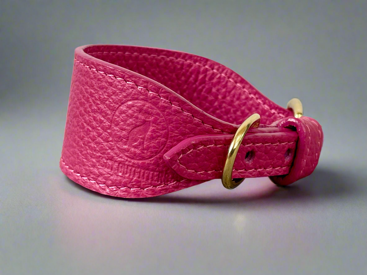 Super soft leather Italian Greyhound collar - Passion Pink