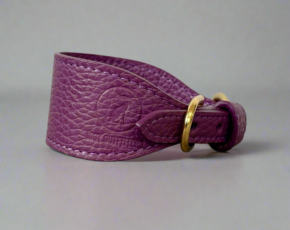 Made in the UK using the softest Italian Dollaro embossed leather handpicked perfectly just for your Whippet. The leather is flexible yet durable being made double sided for a super smooth and caringly comfortable inside surface which sits perfectly against your delicate pooches neck.