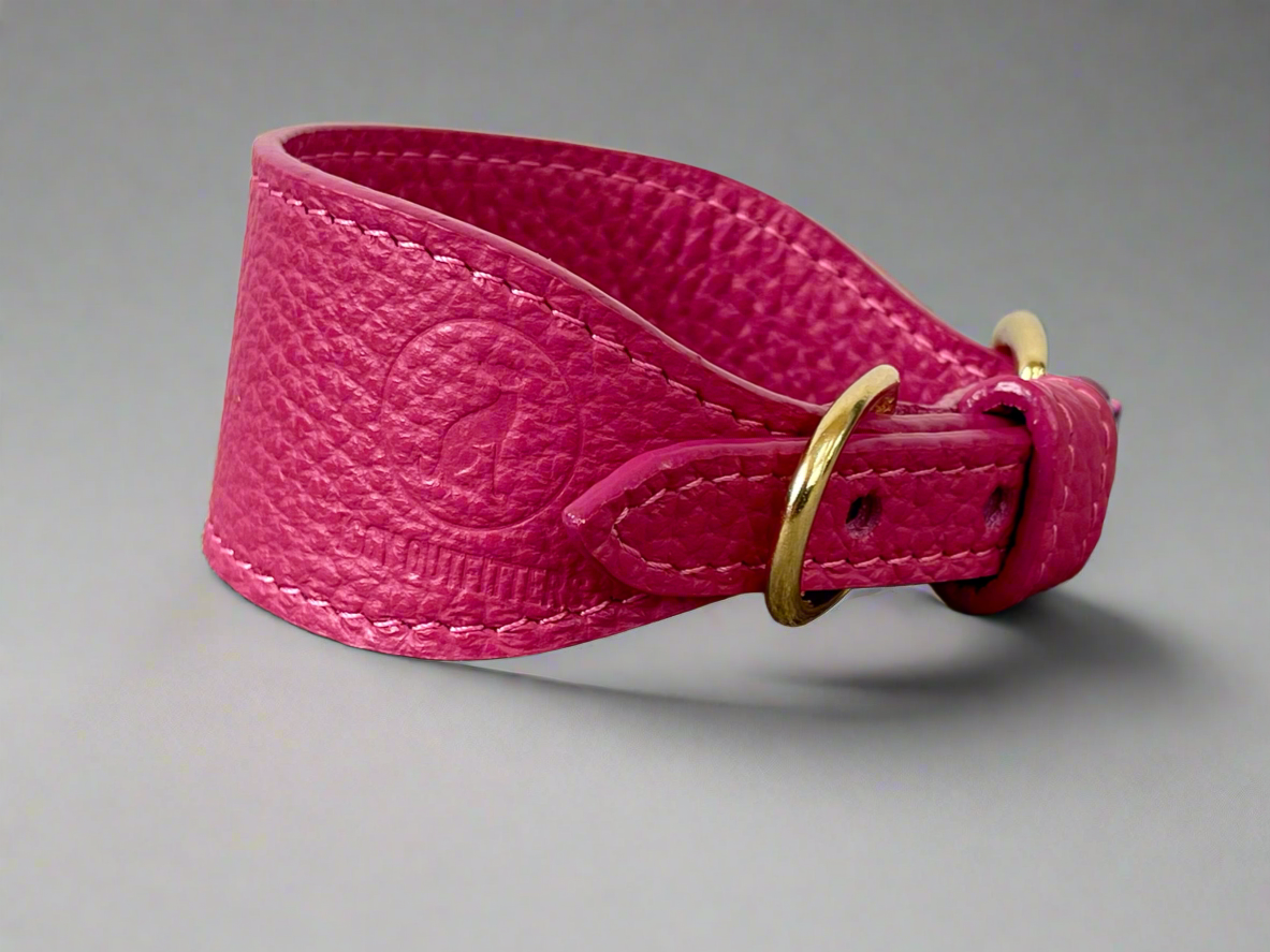 Made in the UK using the softest Italian Dollaro embossed leather handpicked perfectly just for your Whippet. The leather is flexible yet durable being made double sided for a super smooth and caringly comfortable inside surface which sits perfectly against your delicate pooches neck.